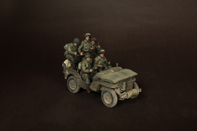 DISCONTINUED SOGA-17 US AIRBORNES WITH OFFICER FOR JEEP. NORMANDY, 1944.