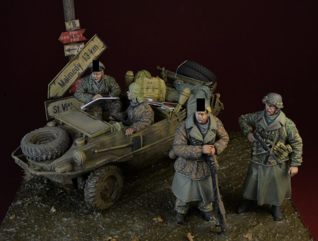 35162 WAFFEN SS BIG SET, ARDENNES 1944, 4 FIGURES + SCHWIMMWAGEN ACCESSORIES (DESIGNED FOR TAMIYA KIT)