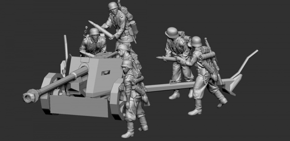 WW2-140 GERMAN ARMY PAK CREW IN SUMMER UNIFORM