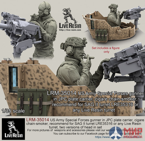 СОЛДАТ СИЛ СПЕЦИАЛЬНЫХ ОПЕРАЦИЙ США С СИГАРОЙ, В ЖИЛЕТЕ JPC ДЛЯ РАЗМЕЩЕНИЯ В БАШНЕ SAG II И ДРУГИХ БАШНЯХ СОВРЕМЕННОЙ БРОНЕТЕХНИКИ И ВОЕННЫХ АВТОМОБИЛЕЙ (ДВА ВАРИАНТА ГОЛОВ В НАБОРЕ)