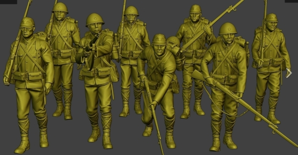 JAPANESE WWII INFANTRY SOLDIERS STANDING (8 FIGURES)