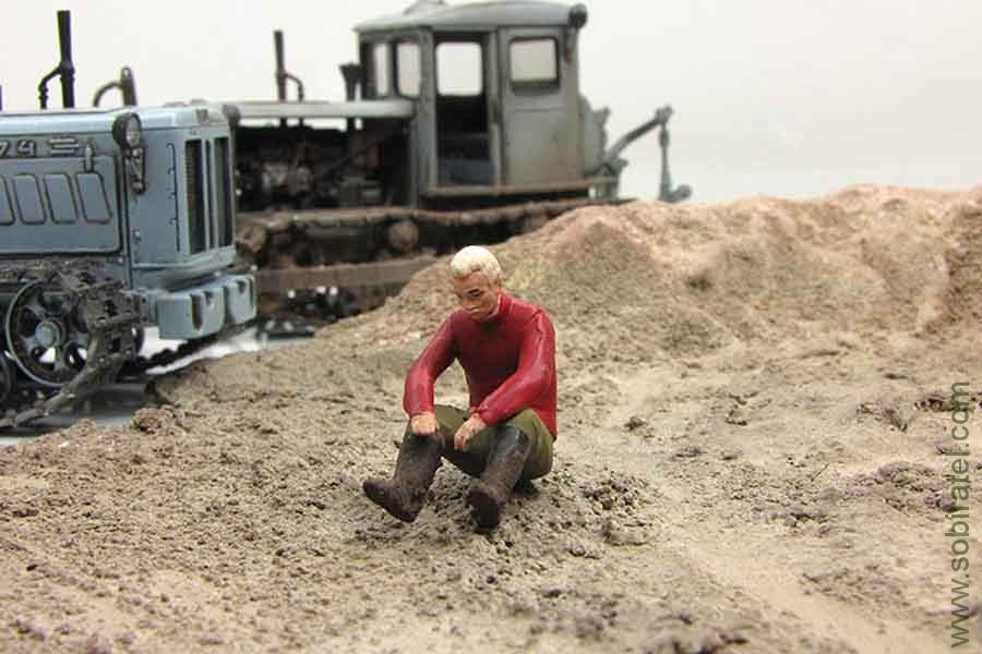 ФИГУРКА МУЖЧИНА В КРАСНОЙ РУБАШКЕ, СИДЯЩИЙ НА ЗЕМЛЕ, 1:43 МОДЕЛСТРОЙ