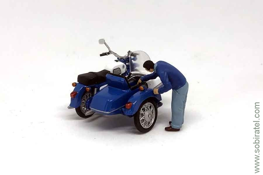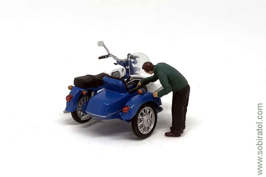 ФИГУРКА ДЕТОЧКИН ТОЛКАЕТ МОТОЦИКЛ, ПО К/Ф (МОДЕЛСТРОЙ 1:43)
