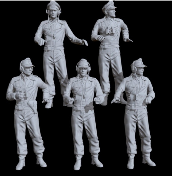 GERMAN WWII TANKERS IN SUMMER UNIFORMS (5 FIGURES)