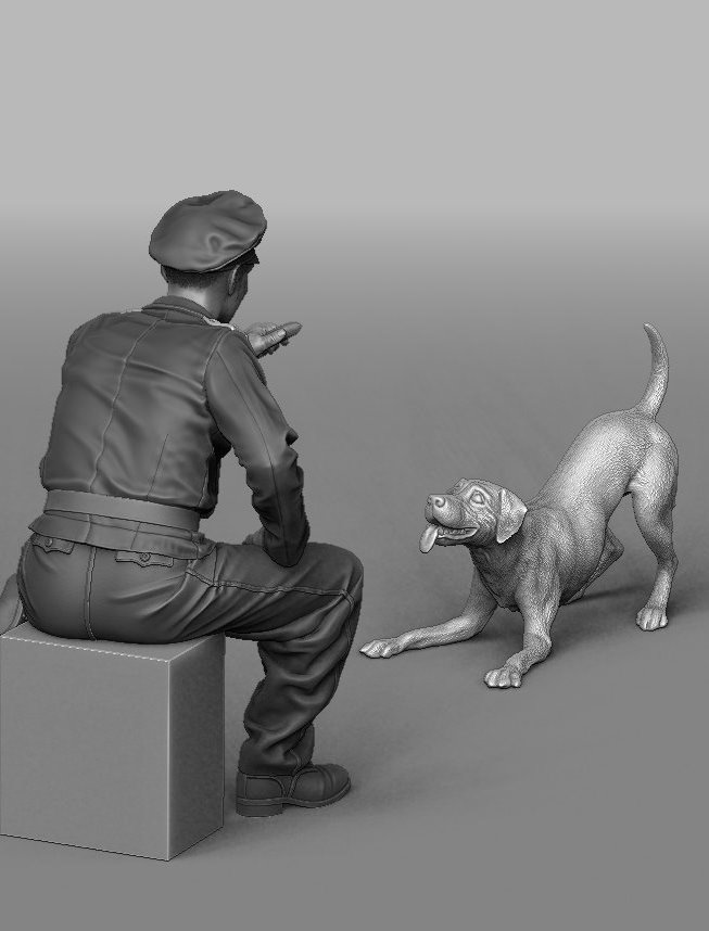 FI35-072 GERMAN TANK OFFICER PLAYING WITH PUPPY