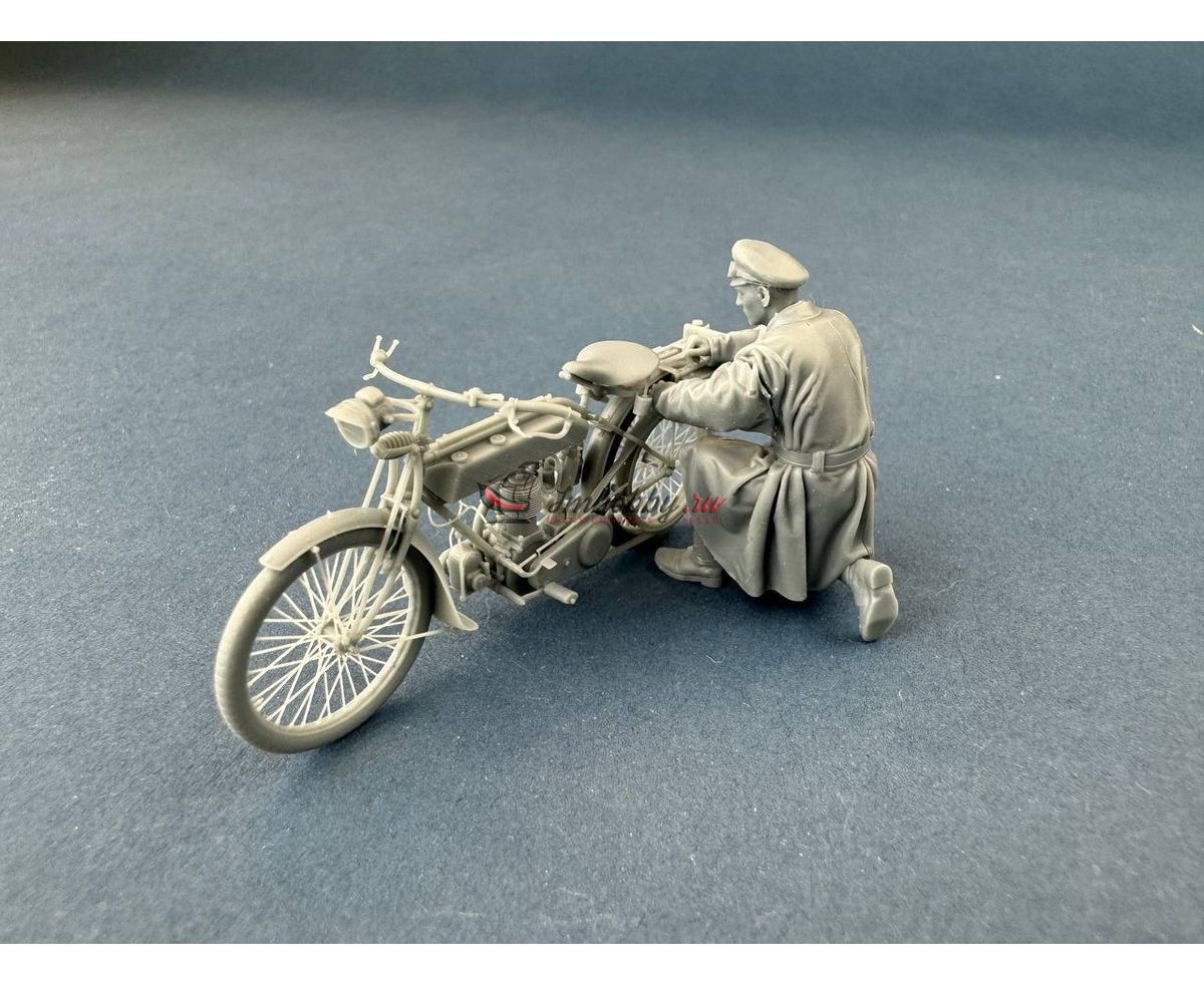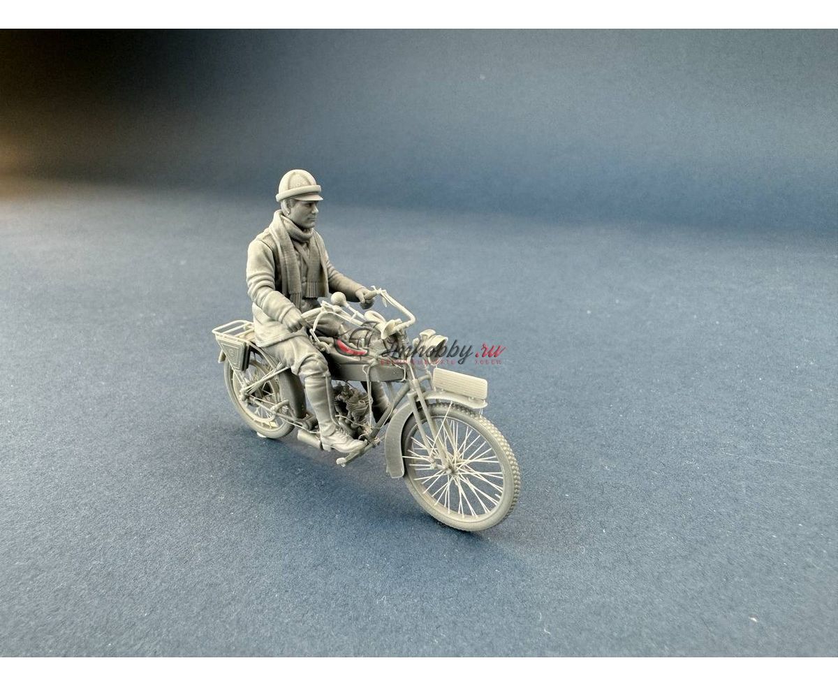 GERMAN DISPATCH RIDER RIDING A MOTORCYCLE