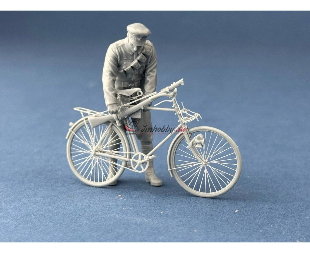 BRITISH ARMY CYCLIST SECURING HIS RIFLE