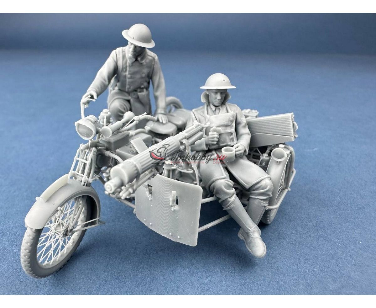 MACHINE GUN CORPS RIDER STARTING THE MOTORCYCLE