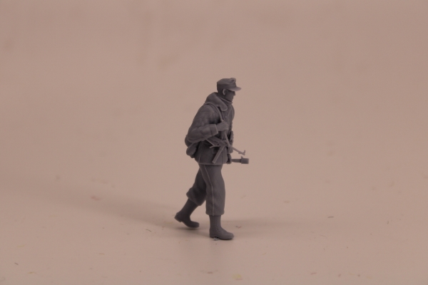 GERMAN SOLDIER WALKING IN GREYCOAT WITH CAP AND KARABINER 98K