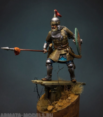 . ТАТАРО-МОНГОЛЬСКИЙ ВОИН С КОПЬЕМ 14 ВЕК. . МАТЕРИАЛ - БЕЛЫЙ МЕТАЛЛ.