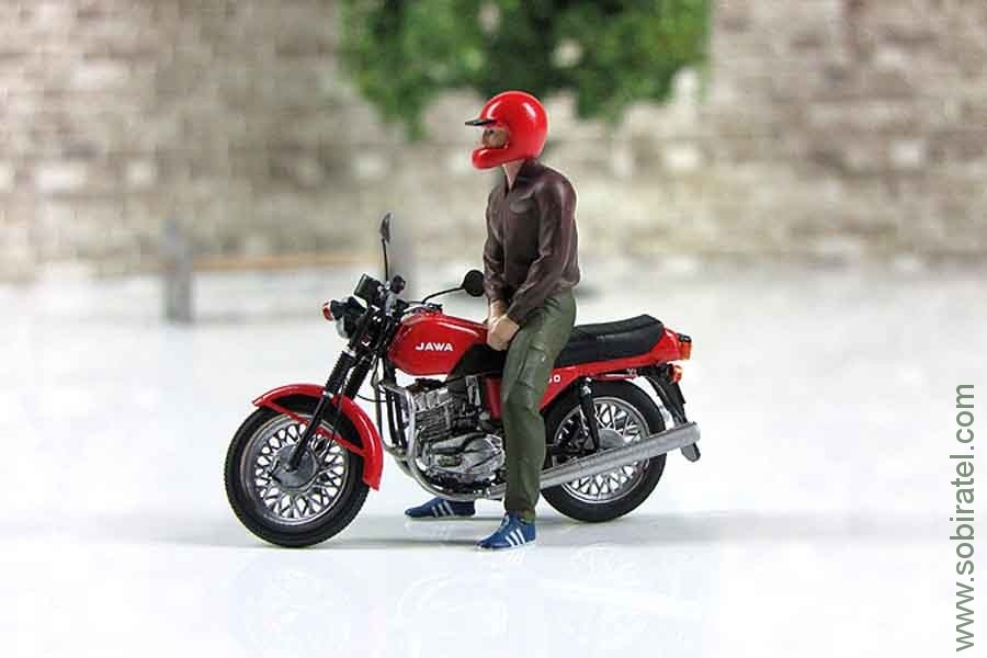ФИГУРКА МОТОЦИКЛИСТ МАКСИМ (ДЛЯ ЯВА-350) КРАСНЫЙ ШЛЕМ (МОДЕЛСТРОЙ 1:43)