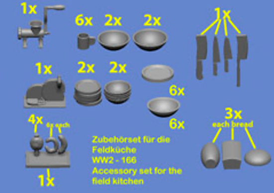 72-WW2-170 ACCESSORY SET FOR THE FIELD KITCHEN MEAT GRINDER, BOWLS, KNIVES, ETC.