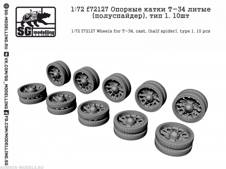 F72127 ОПОРНЫЕ КАТКИ Т-34 ЛИТЫЕ (ПОЛУСПАЙДЕР) ТИП 1. 10ШТ