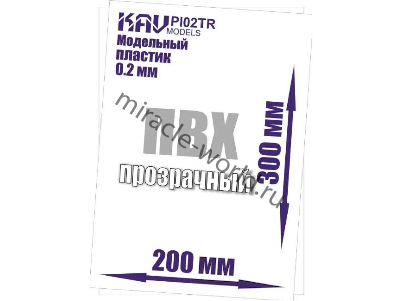 KAV PL02TR ПЛАСТИК МОДЕЛЬНЫЙ ЛИСТОВОЙ 0,2-ММ, ПРОЗРАЧНЫЙ (ПВХ)