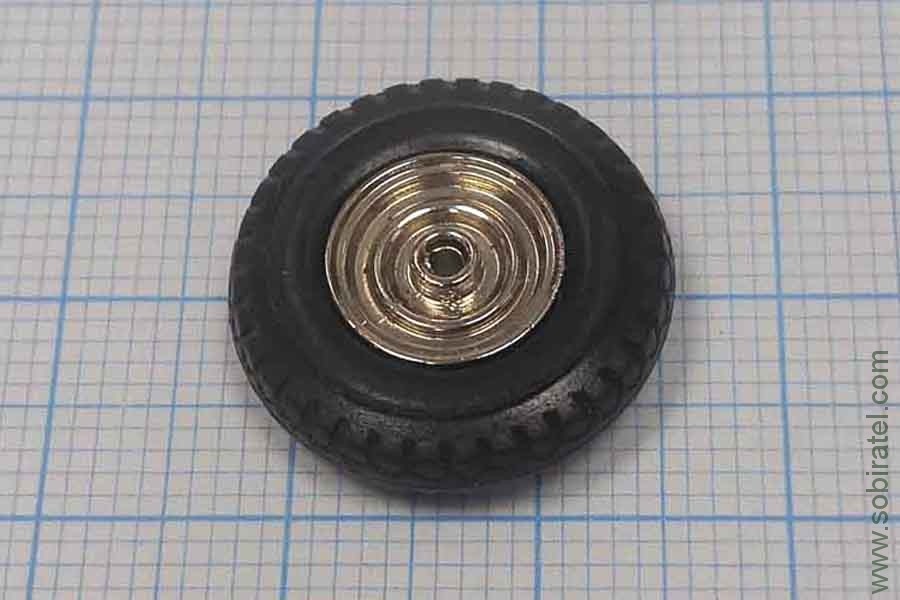 КОЛЕСО В СБОРЕ УАЗ, РАННИЙ ХРОМ, 1 ШТ. (ТАНТАЛ 1:43)