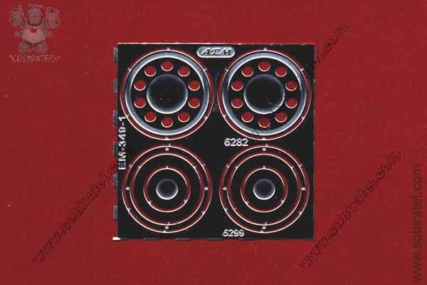EM-349-1 ФОТОТРАВЛЕНИЕ. НАБОР КОЛПАКОВ ЗАДНИХ КОЛЁС ДЛЯ ЭЛЕКТРОБУС 6282 / 5299