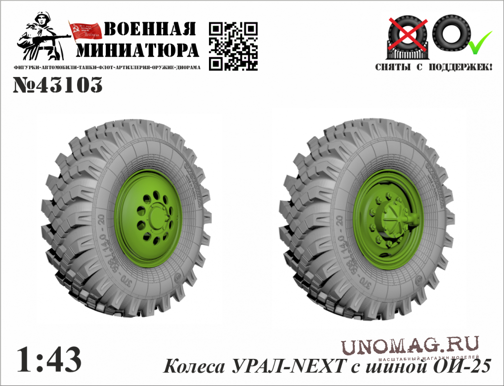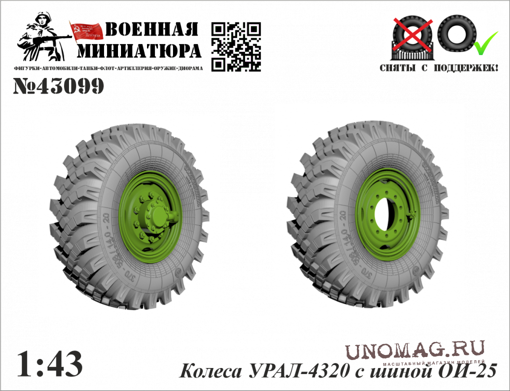КОЛЕСА УРАЛЬСКИЙ-4320 С ШИНОЙ КАМА-УРАЛ 1:35