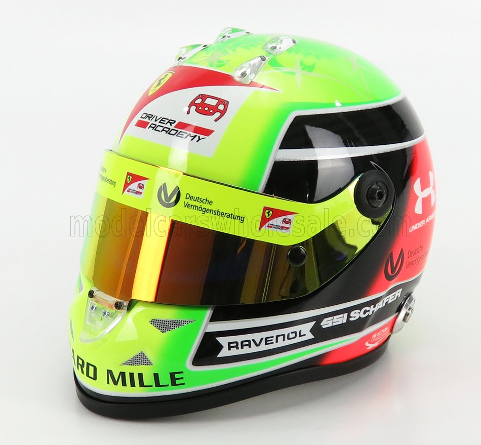 SCHUBERTH HELMET F2 CASCO HELMET DALLARA TEAM PREMA RACING N 20 SEASON MICK SCHUMACHER (2020) F2 WORLD CHAMPION, YELLOW GREEN RED BLACK