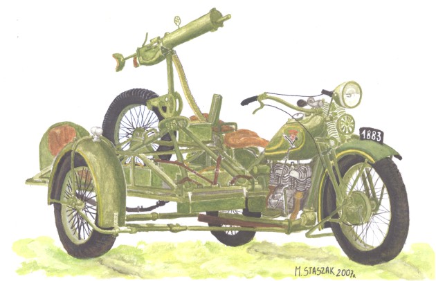 HEAVY MOTORCYCLES M111 SOKÓŁ (FALCON) 1000 WITH POLISH HEAVY MACHINE GUN (ANTI-AIRCRAFT) - BROWNING WZ.30