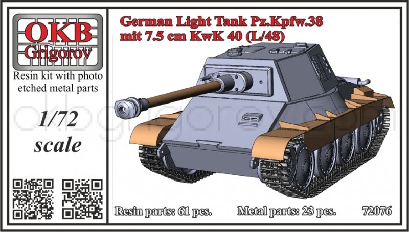 V72077 GERMAN LIGHT TANK PZ.KPFW.38 MIT 7.5 CM KWK 40 (L/48)