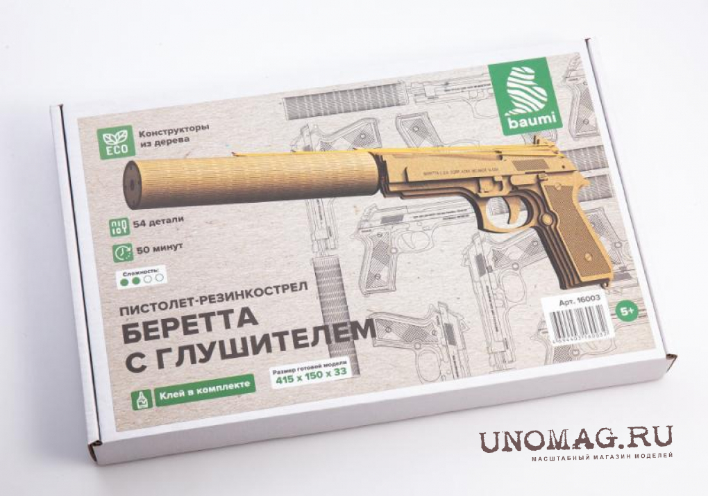 ПИСТОЛЕТ-РЕЗИНКОСТРЕЛ БЕРЕТТА С ГЛУШИТЕЛЕМ
