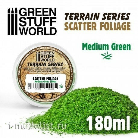 GREEN STUFF WORLD ЛИСТВА СРЕДНИЙ ЗЕЛЁНЫЙ - 180 МЛ / SCATTER FOLIAGE - MEDIUM GREEN - 180 ML