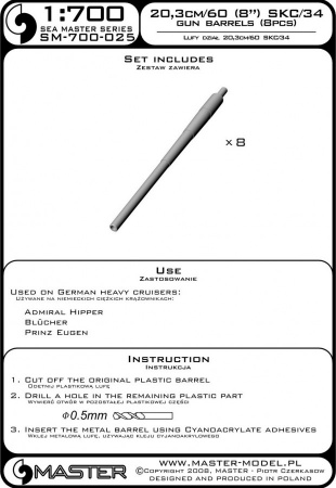 Купить НЕМЕЦКИЙ 203СМ / 60 (8 ДЮЙМОВ) SKC / 34 (8ШТ) - ADMIRAL HIPPER BLUCHER PRINZ EUGEN (1/700)