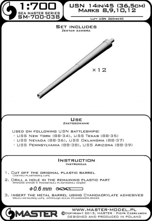USN 14 ДЮЙМОВ / 45 (356 СМ) (12 ШТ.) - КЛАССЫ НЬЮ-ЙОРК (B-34) НЕВАДА (B-36) И ПЕНСИЛЬВАНИЯ (B-38) - ПОДХОДИТ ДЛЯ МОДЕЛИ USS ARIZONA