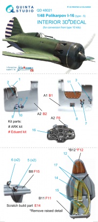 QD 1:48 3D ДЕКАЛЬ ИНТЕРЬЕРА КАБИНЫ И-16 ТИП 5 (ДЛЯ КОНВЕРСИИ ИЗ ЛЮБЫХ МОДЕЛЕЙ И-16 ТИП 10)