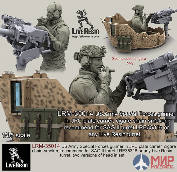 СОЛДАТ СИЛ СПЕЦИАЛЬНЫХ ОПЕРАЦИЙ США С СИГАРОЙ, В ЖИЛЕТЕ JPC ДЛЯ РАЗМЕЩЕНИЯ В БАШНЕ SAG II И ДРУГИХ БАШНЯХ СОВРЕМЕННОЙ БРОНЕТЕХНИКИ И ВОЕННЫХ АВТОМОБИЛЕЙ (ДВА ВАРИАНТА ГОЛОВ В НАБОРЕ)live resin1/35