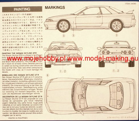 ОПИСАНИЕ ТОВАРА Набор пластиковых элементов для сборки модели автомобиля Nissan Skyline GT-R. Модель имеет высокую степень детализации с множеством конструктивных подробностей. Покрышки из синтетической резины. Сборка элементов осуществляется с помощью специального клея. Внимание! Клей и краски в комплект не входят.