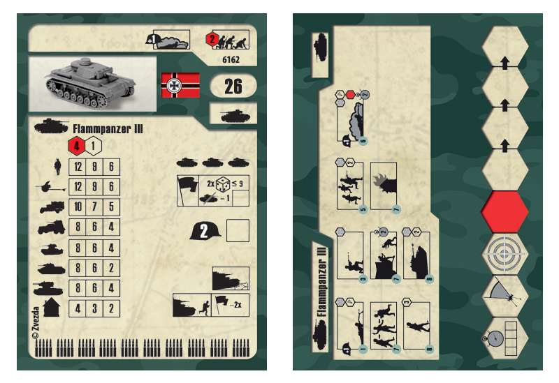 Сборная модель - Немецкий огнеметный танк Pz.Kfw III. Историческая справка: Модификация Т-3, выпускавшаяся с февраля по апрель 1943г. Планировалось использовать данный танк в уличных боях. Особого вклада в боевые действия танк не произвёл. Документов о его применении очень мало. 41 такая машина приняла участие в боях под Курском в 1943 году. Использование танка в Art of Tactic: В игре имеет меткость 4, предназначен исключительно для ближнего боя. Цена заслужена: уничтожение пехоты и танков противника, прорыв обороны и постановка дым завесы. Из минусов стоит отметить слабую защиту и медлительность на открытой местности, а также небольшой боезапас. В умелых руках эта машина способна творить чудеса и наводить ужас на противника. Набор деталей из пластмассы для сборки одной модели неокрашенного танка. Состав набора: 1 неокрашенный танк 1 флаг отряда Инструкция на коробке! Сборка осуществляется без использования клея. Карточку с игровыми характеристиками отряда вы найдете на этой странице в разделе "СХЕМА СБОРКИ И ОКРАСКИ"
