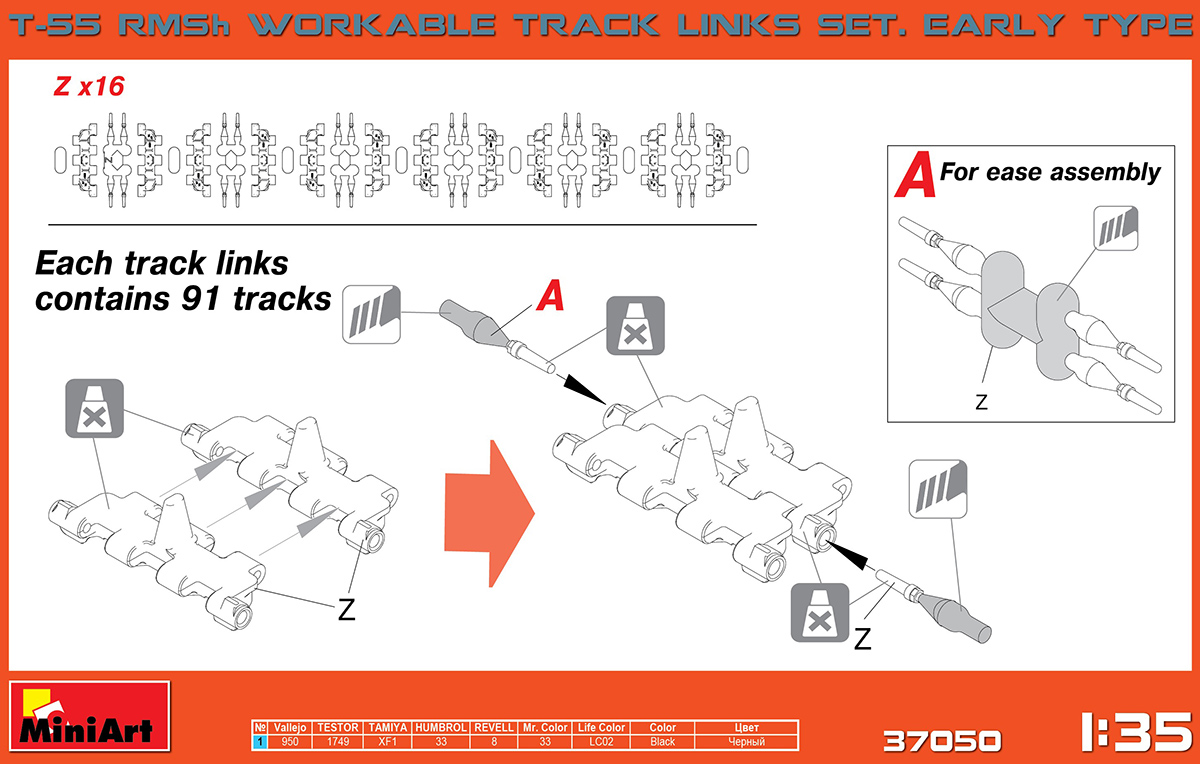 T-55 RMSH РАБОЧИЕ ГУСЕНИЧНЫЕ ЦЕПИ. РАННЕГО ТИПА miniart 1/35