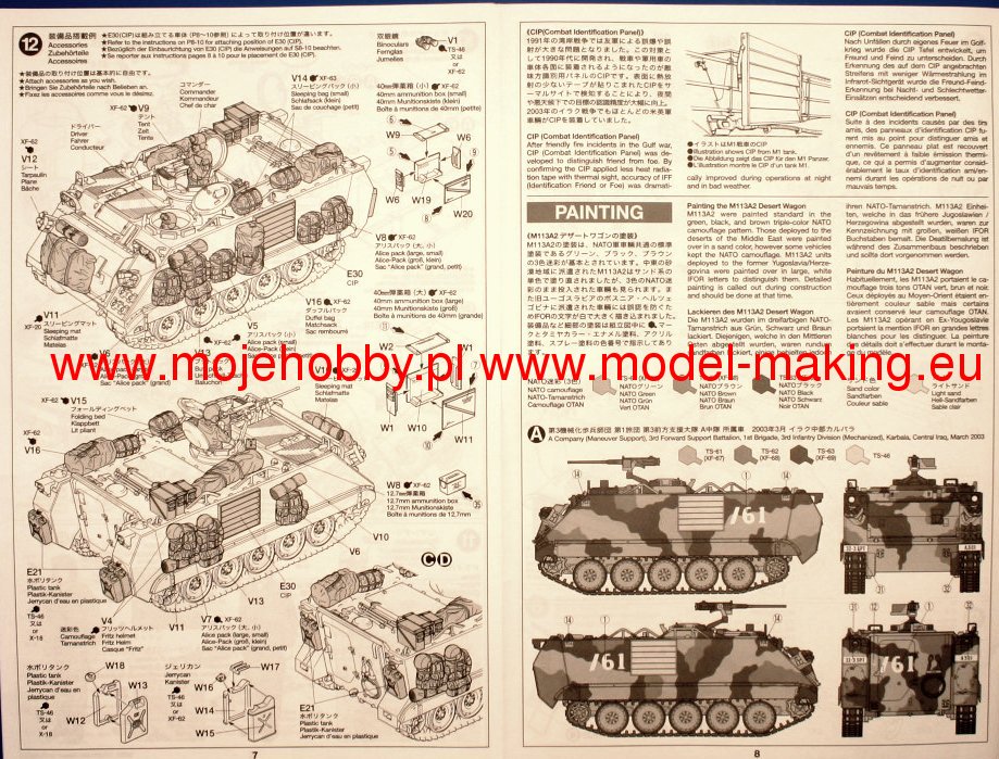 ОПИСАНИЕ ТОВАРА Сборная модель из пластика. U.S. M113A2 Американский бронетранспортер с 12.7 мм. пулеметом. В набор входят различные аксессуары и фигуры командира и стрелка. Имеются два варианта декалей- пустынная версия, и НАТО. Комплект состоит из пластиковых элементов для сборки. Элементы собираются с помощью специального клея. Внимание! Клей и краски в комплект не входят.