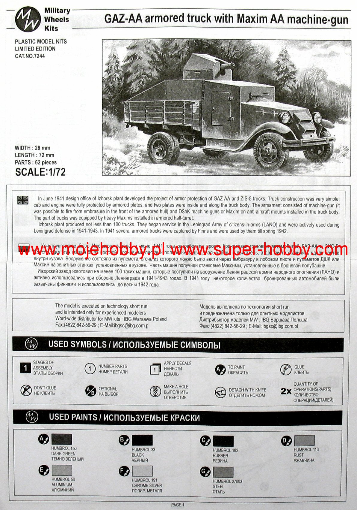 MILITARY WHEELS 7244 Г-АА БРОНИРОВАННЫЙ С ПУЛЕМЕТОМ МАКСИМ ЛЕНИНГРАД 1941 1/72