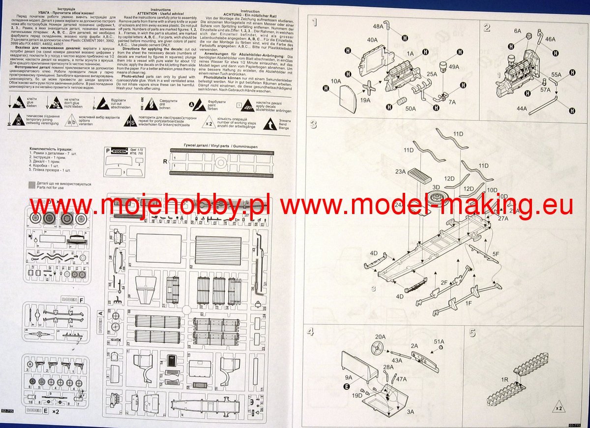 Седьмая часть сборки модели грузовика "V3000 M (Sd.Kfz.3B) Maultier" фирмы ICM в масштабе 1/35.