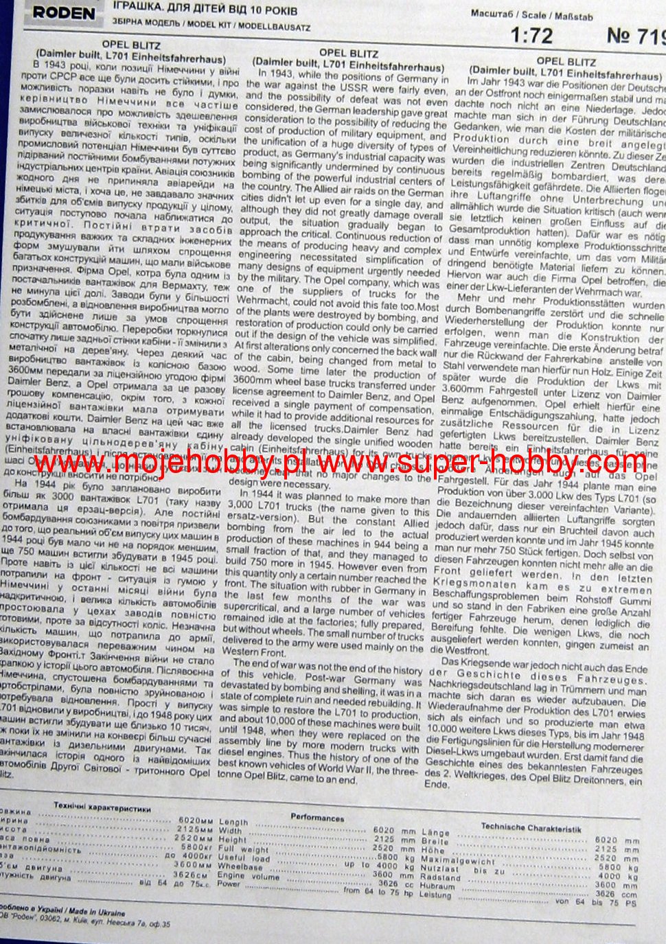 CБОРНАЯ МОДЕЛЬ OPEL BLITZ (DAIMLER BUILT, L701 EINHEITSFAHRERHAUS) WOODEN CABIN