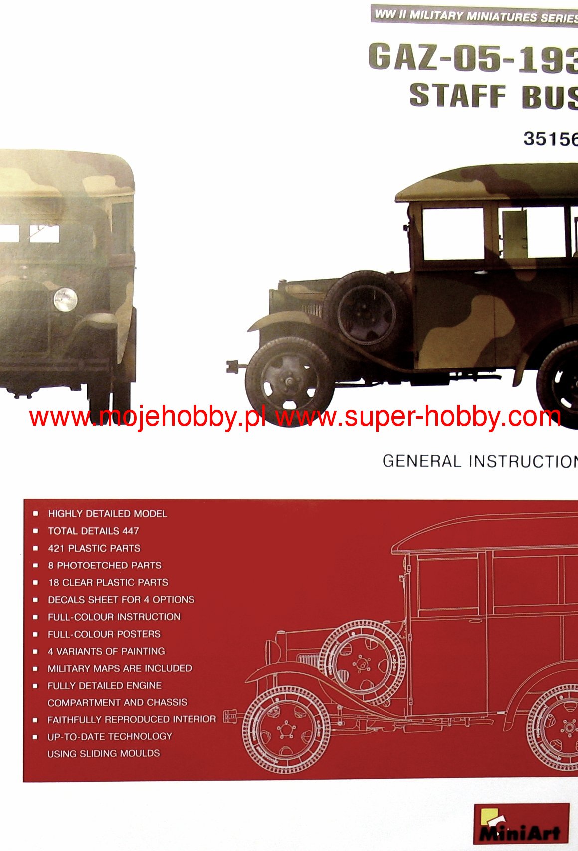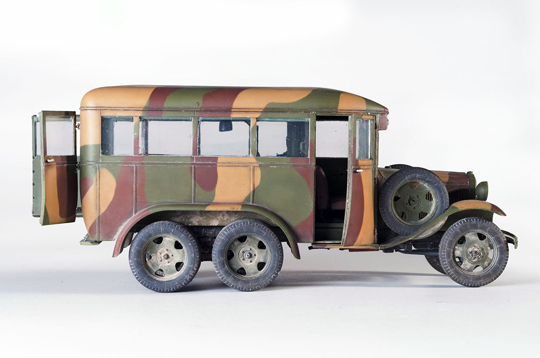 Набор содержит модель советского автобуса. Высокодеталированная модель Всего 448 деталей 422 детали из серого пластика 8 фототравленых деталей 18 деталей из прозрачного пластика Деколи с 3 вариантами обозначений Полноцветная инструкция Цветные плакаты времен ВМВ 4 варианта Окраски Цветная военная карта Подробно сделано моторное отделение и шасси Точно выполнен интерьер Использованы современные формы со слайдерами