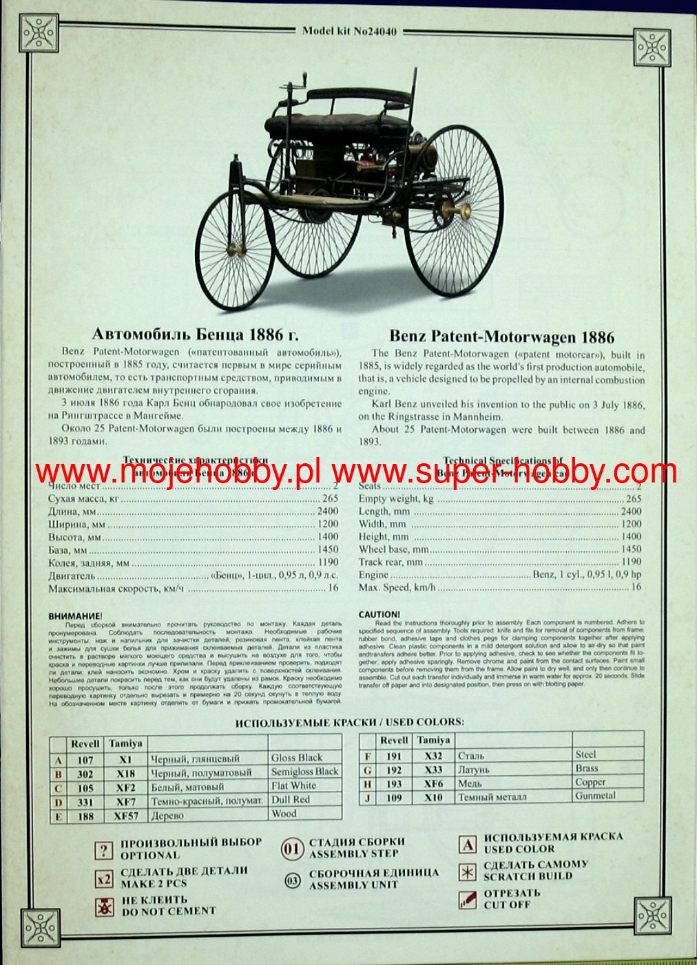 Купить АВТОМОБИЛЬ БЕНЦА 1886 Г. (1/24)