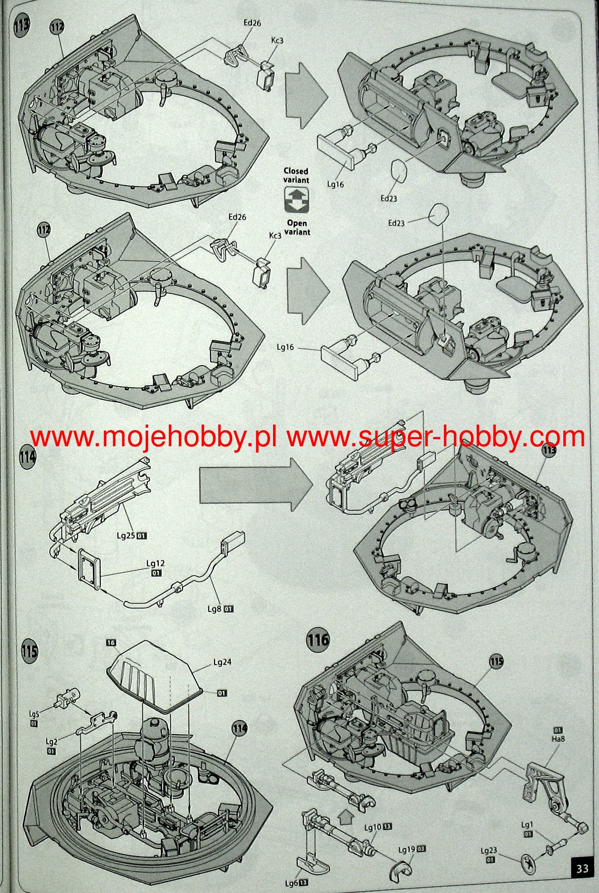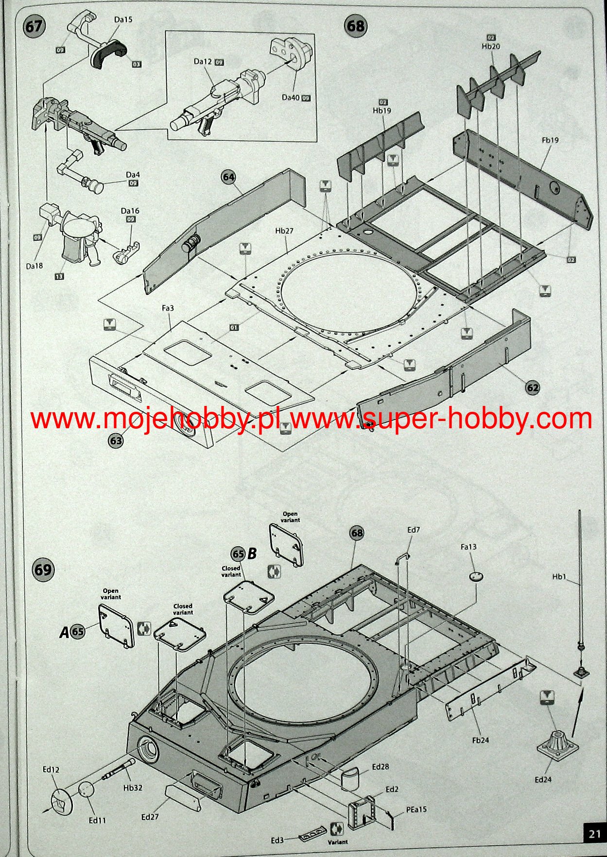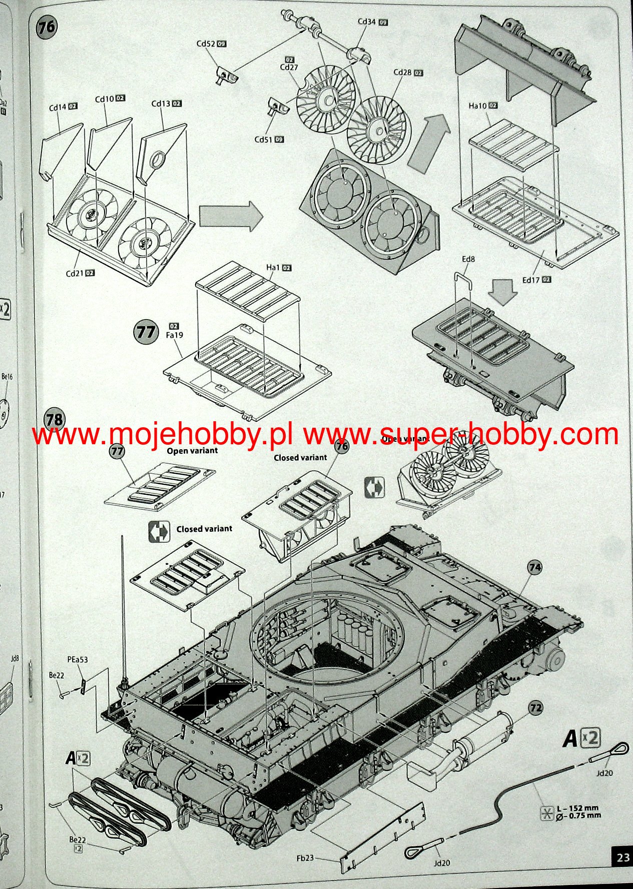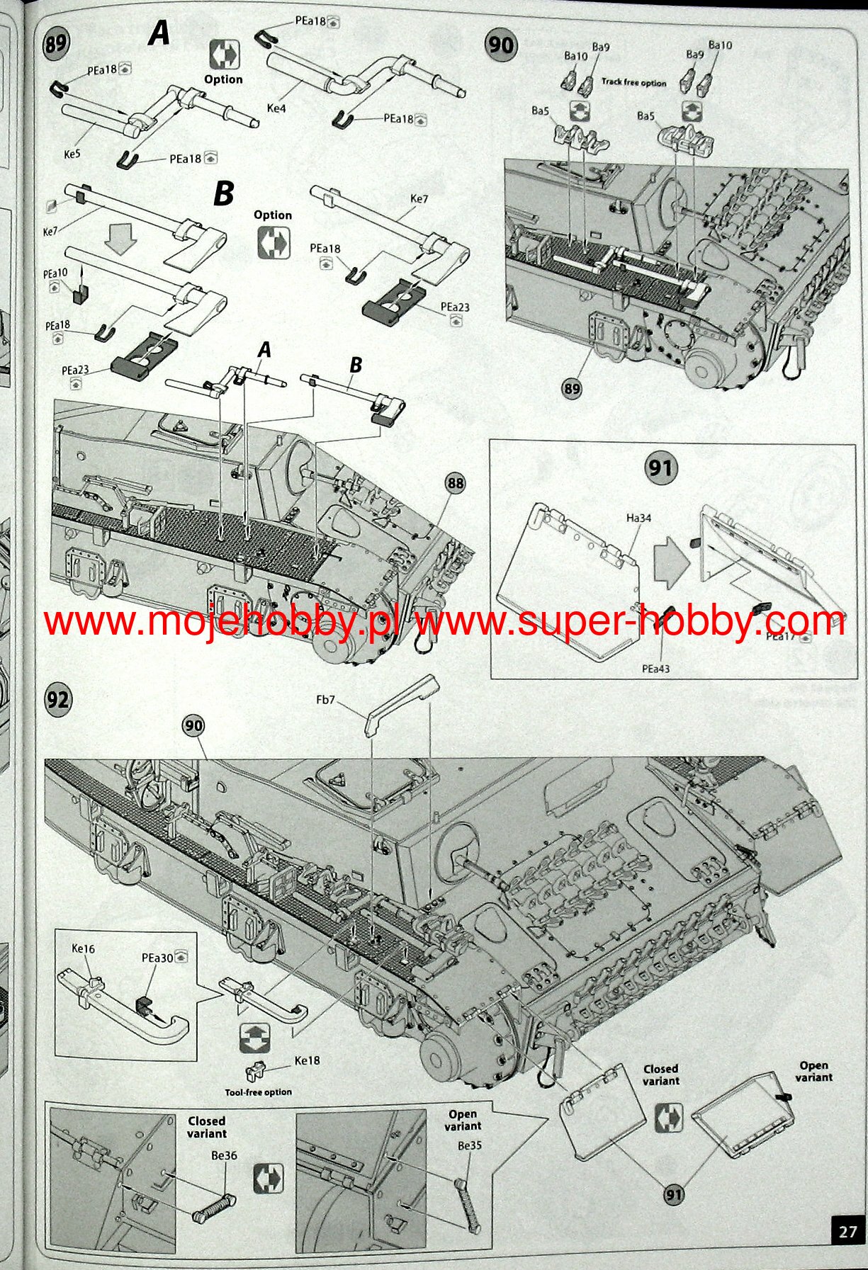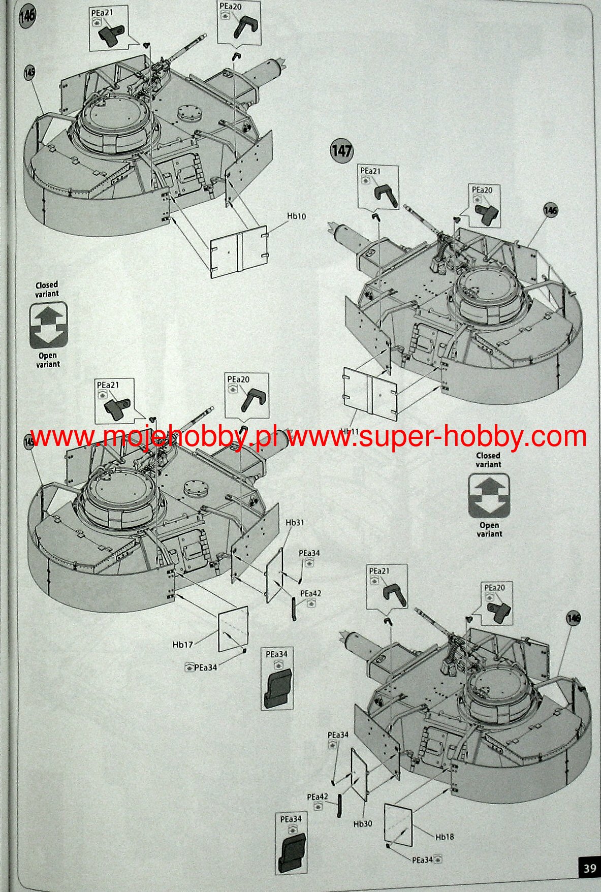 HIGHLY DETAILED MODEL DRIVER COMPARTMENT INTERIOR ACCURATELY REPRESENTED FULLY DETAILED FIGHTING COMPARTMENT INTERIOR HIGHLY DETAILED INTERIOR OF TURRET ALL HATCHES CAN BE POSED OPEN & CLOSED FULL AMMUNITION INCLUDED ENGINE INCLUDED WORKABLE TRACKS INCLUDED CLEAR PLASTIC PARTS INCLUDED PHOTO-ETCHED PARTS INCLUDED DECAL SHEET FOR 4 OPTIONS