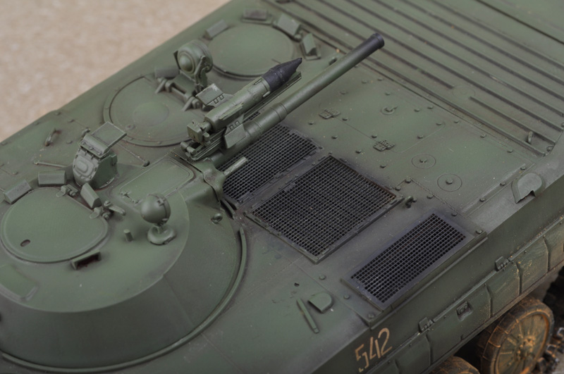 Описание БМП-1 советская гусеничная боевая машина пехоты. Первая в мире серийная плавающая боевая машина пехоты, предназначенная для транспортировки личного состава к месту выполнения боевой задачи, повышения его мобильности и защищённости и поддержки огнём и для совместных действий с танками в бою. Была разработана в ГСКБ-2 (главном специальном конструкторском бюро 2) на Челябинском тракторном заводе им. В. И. Ленина для замены БТР-50П. Боевая машина принята на вооружение ВС СССР в 1966 году. Серийно выпускалась с 1966 по 1983 год. Впоследствии чертежи и прочая документация переданы на Курганский машиностроительный завод, где впоследствии выпускалась и БМП-2. В настоящее время производство БМП-1 продолжается в Румынии. Краткая информация о модели Длина: 191 мм Ширина: 85 мм Всего деталей 460+ Металлические детали - ствол Фототравление 1 рамка Всего литников 11, верх корпуса, низ корпуса, башня и траки