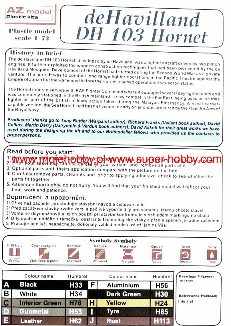 AZMODEL АНГЛИЙСКИЙ ИСТРЕБИТЕЛЬ DH-103 HORNET FR.MK.4
