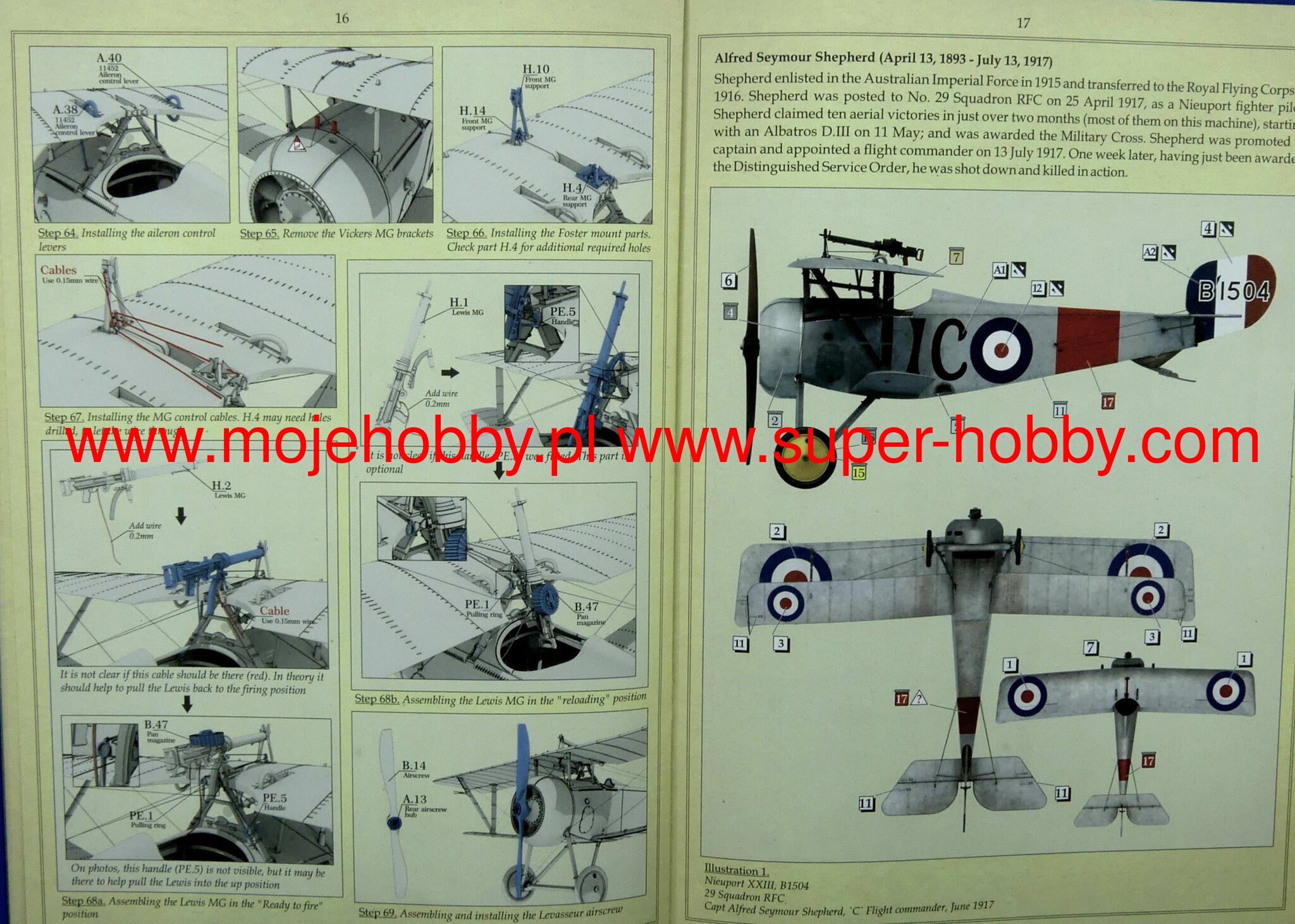 The Nieuport 23 is a French fighter plane in a mixed half-wing structure with canvas covering most of the surfaces from the First World War. The prototype flew in 1917. The machine was a development of the great Nieuport 17 and outwardly did not differ much from it. However, it had a new 120HP Le Rhone 9Jb engine and a new machine gun synchronizer. The plane was used in aviation under the designation Nieuport 23C1. They flew on it, among others. French, American and Belgian pilots. Technical data: length: 6.4 m, wingspan: 8.2 m, height: 2.4 m, maximum speed: 168 km / h, rate of climb: 5.8 m / s, maximum ceiling 6500 m, armament: fixed - 1 Vickers machine gun 7.7mm cal.