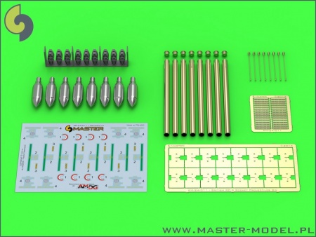 БРИТАНСКАЯ 3-ДЮЙМОВАЯ РАКЕТА RP-3 С ГОЛОВКАМИ SAP 60 ФУНТОВ (8 ШТ.) - ДЛЯ РАННЕГО РЕЛЬСА MK I - ИСПОЛЬЗОВАЛАСЬ НА TYPHOON MOSQUITO BEAUFIGHTER HURRICANE И Т. Д.master1/24