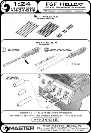 Купить F6F-5 HELLCAT - ПОЗДНЕЕ ВООРУЖЕНИЕ (ПРИКРЫТЫЕ СТВОЛЫ БРАУНИНГА .50 КАЛИБРА) (1/24)