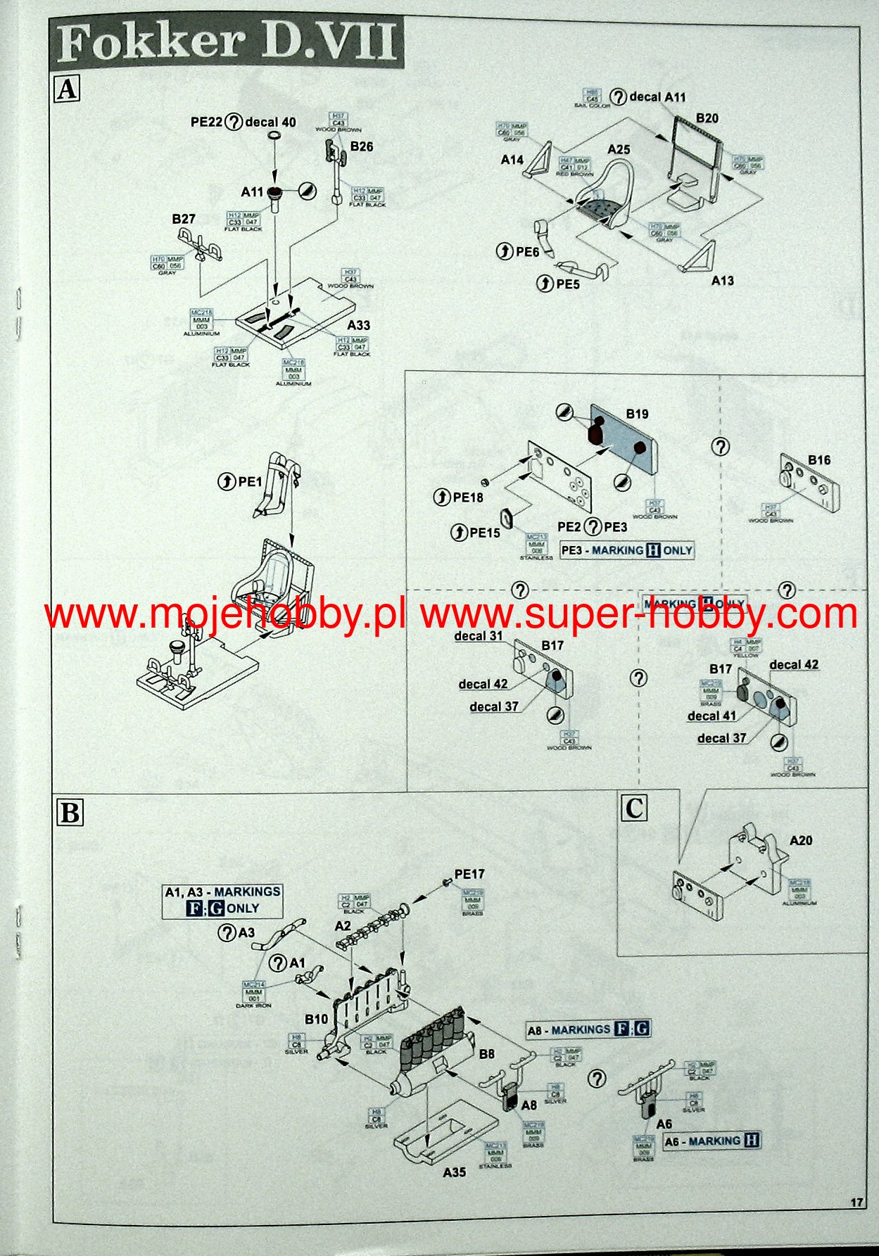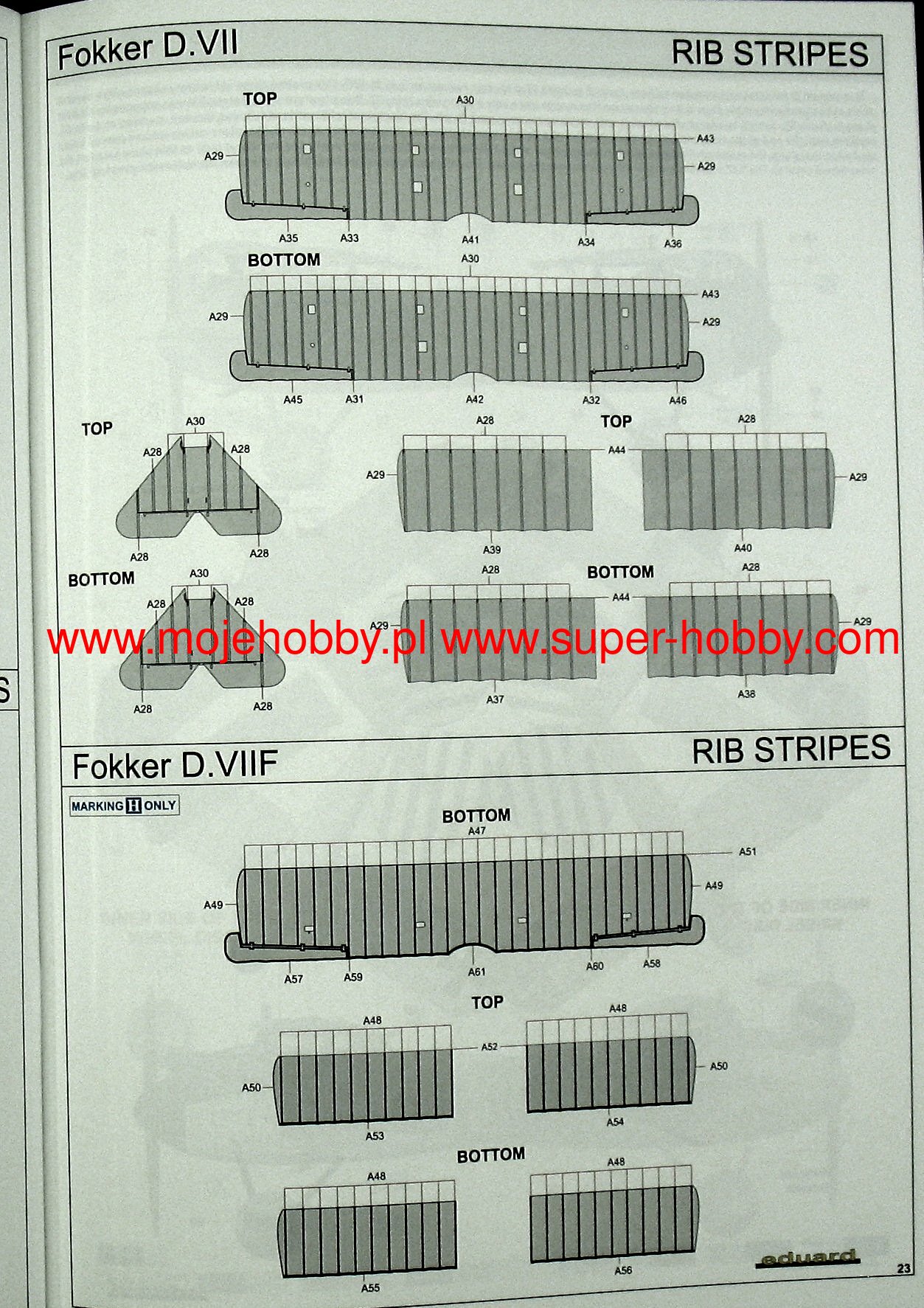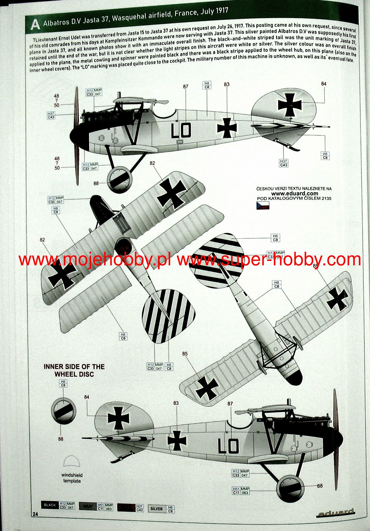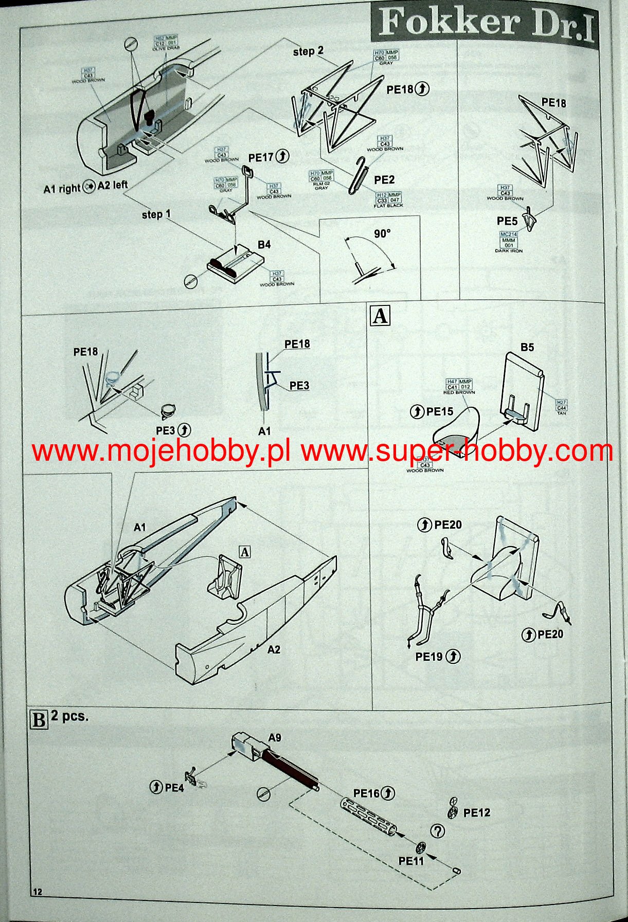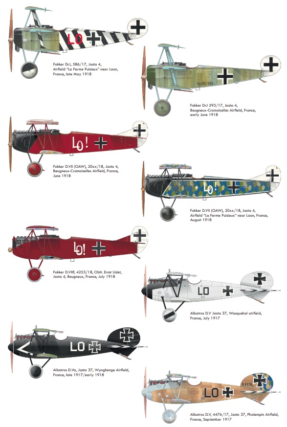 German Fokker Dr. I triple-lobe fighter plane from the First World War. The work of Anthony Fokker and Reinhold Plat. The plane was a German response to the appearance of the British Sopwith Triplane fighter. The Fokker Dr.I was characterized by fantastic maneuverability, a very high rate of climb, and achieved a decisive advantage in wheel combat with biplane planes. However, it had a low top speed (165 km / h), which was partly also due to the use of a weak 110 HP engine. The first pre-production vehicles (marked with the symbol V.5) were tested by eminent German pilots: Werner Voss and Manfred von Richthofen, nicknamed the "Red Baron". It was the latter who made this model of aircraft famous, winning many victories on it. Serial Fokker Dr. I planes served at the front from October 1917. until the end of the war. A total of 320 units were produced. Technical data: Top speed: 165 km / h; climb speed 5.7 m / s, maximum ceiling 6095 m, armament: two 7.92 mm Spandau machine guns, firing through a propeller.Albatros DV is a biplane of wooden structure with the front part of the fuselage, covered with aluminum sheet. The DV version did not differ much from its predecessor, the D.III series, mainly in terms of the fuselage section - the DV had an elliptical hull, which made it lighter by about 50 kg. The construction of the aileron drive was solved differently. These small changes seemed so small that the new aircraft was not even tested. The construction of the 1,5-wing aircraft, as in Nieuport, required a light aircraft. The inline albatrosses were too heavy for that. When recovering the aircraft from a dive flight, the lower lobe of the DV tended to break off frequently; this disadvantage was not eliminated by the end of the war. The D.Va version was stronger, but also heavier. About 900 Albatros DV series aircraft were built. Technical data: Maximum speed: 186 km / h; climb speed 4.2 m / s, ceiling practical 5700 m, armament: two 7.92 mm LMG08 / 15 machine guns.The Fokker D.VII is a German biplane fighter with a mixed structure (plywood, canvas, aluminum) from the end of the First World War. The flight of the prototype took place in January 1918, and in May of the same year, the plane entered service in the air. The Fokker D VII quickly demonstrated its superiority over the Allied aircraft. It had higher acceleration and a higher ceiling, which, combined with very good control devices, made the German pilots able to defeat 565 Allied machines in August 1918. Designed by Reinhold Platz, D VII was selected from among many other designs during the competition between January-February 1918. Baron Manfred von Richthofen (known as the "Red Baron") himself flew a prototype marked with the code V11. He later stated that the plane was easy to navigate, had a good climb rate, and was suited to "dive" flights in which the Fokker was found to be "rock hard". Other pilots also emphasized good visibility from the cockpit. The plane was of a mixed construction. The rectangular hull was made of welded steel pipes with a cloth cover. Only the nose of the fuselage housing the engine had removable side covers made of aluminum sheet. Double-girder panels, connected with each other by thin N-shaped stands, free-bearing with a thick profile, covered with plywood up to the first girder, the rest with canvas. The plane used Mercedes D.IIIa (180-200HP) or BMW IIIa 185HP engines as the drive. The BMW engine was a much better power unit, but as a result of limited production, the Mercedes engine was used on a much larger scale. It is worth noting that the Fokker D.VII flew min. Herman Goring, who achieved many air victories on it. The quality of the machine can be proved by the fact that it was produced until 1926. Technical data (for the version with the BMW-Fokker D.VIIF engine): length: 6.95 m, wingspan: 8.9 m, height: 2.75 m, maximum speed: 200 km / h, climb speed: 9, 52 m / s, maximum ceiling 6000 m, armament: fixed - 2 LMG 08/15 machine guns, cal. 7.92 mm. 3_edu2135_instruction_sheet.pdf