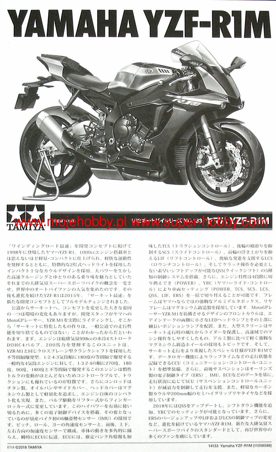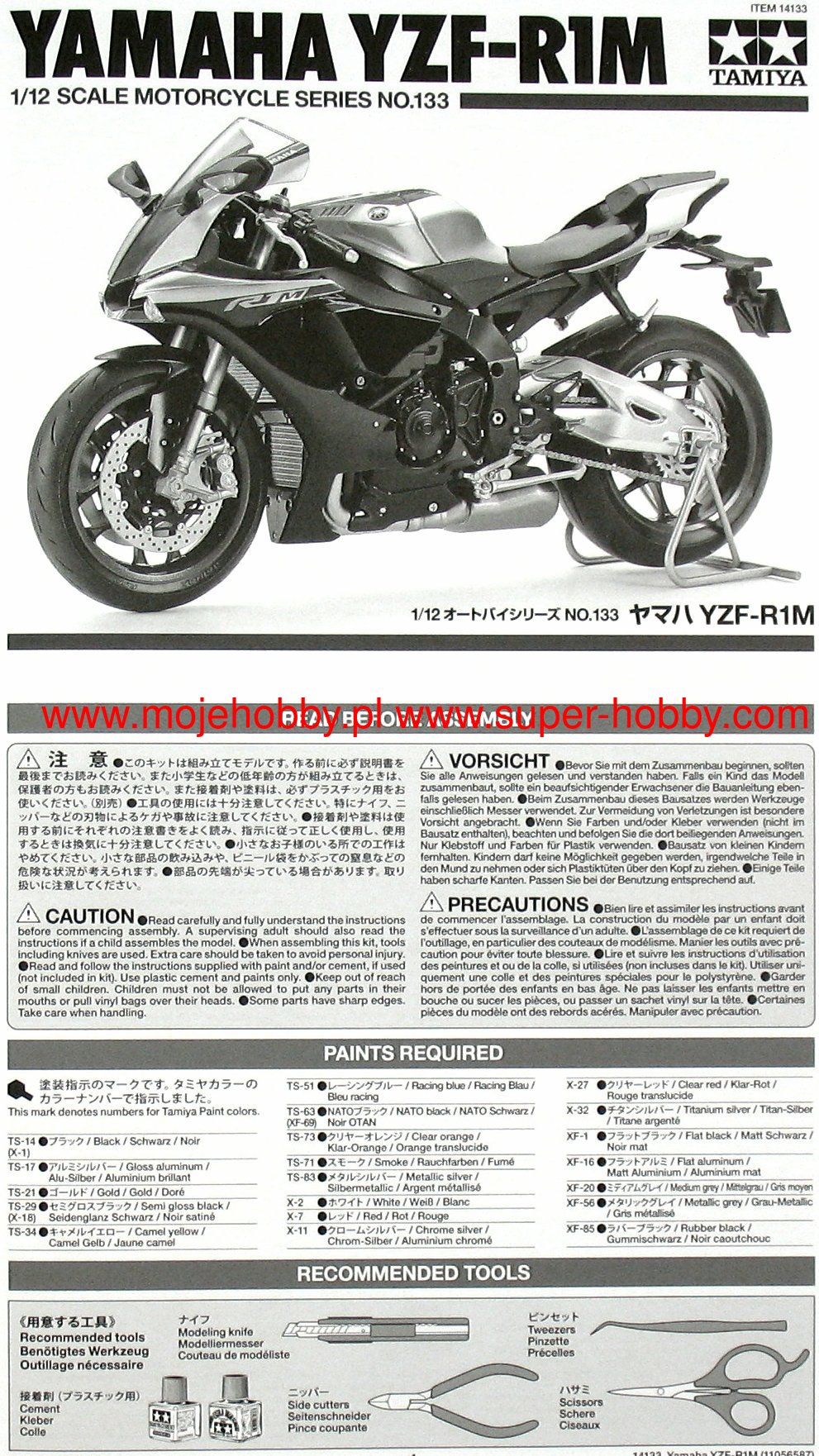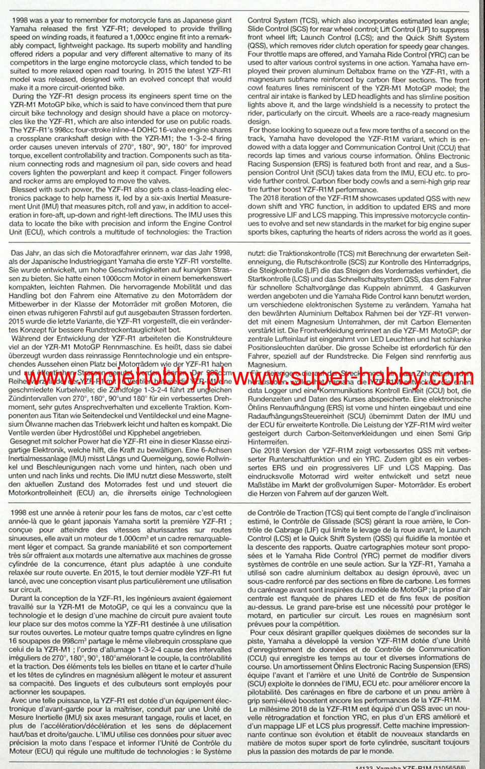 ОПИСАНИЕ ТОВАРА Сборная модель мотоцикла YAMAHA YZF-R1M в масштабе 1:12 Сборка элементов осуществляется при помощи специального клея. Внимание! Клей и краски в комплект не входят.