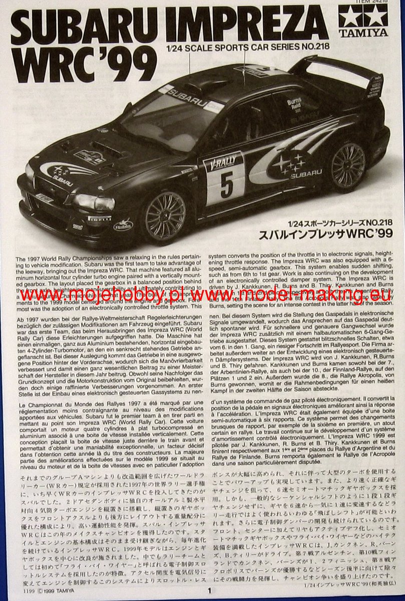 Купить SUBARU IMPREZA WRC`99 (1:24) (1/24)