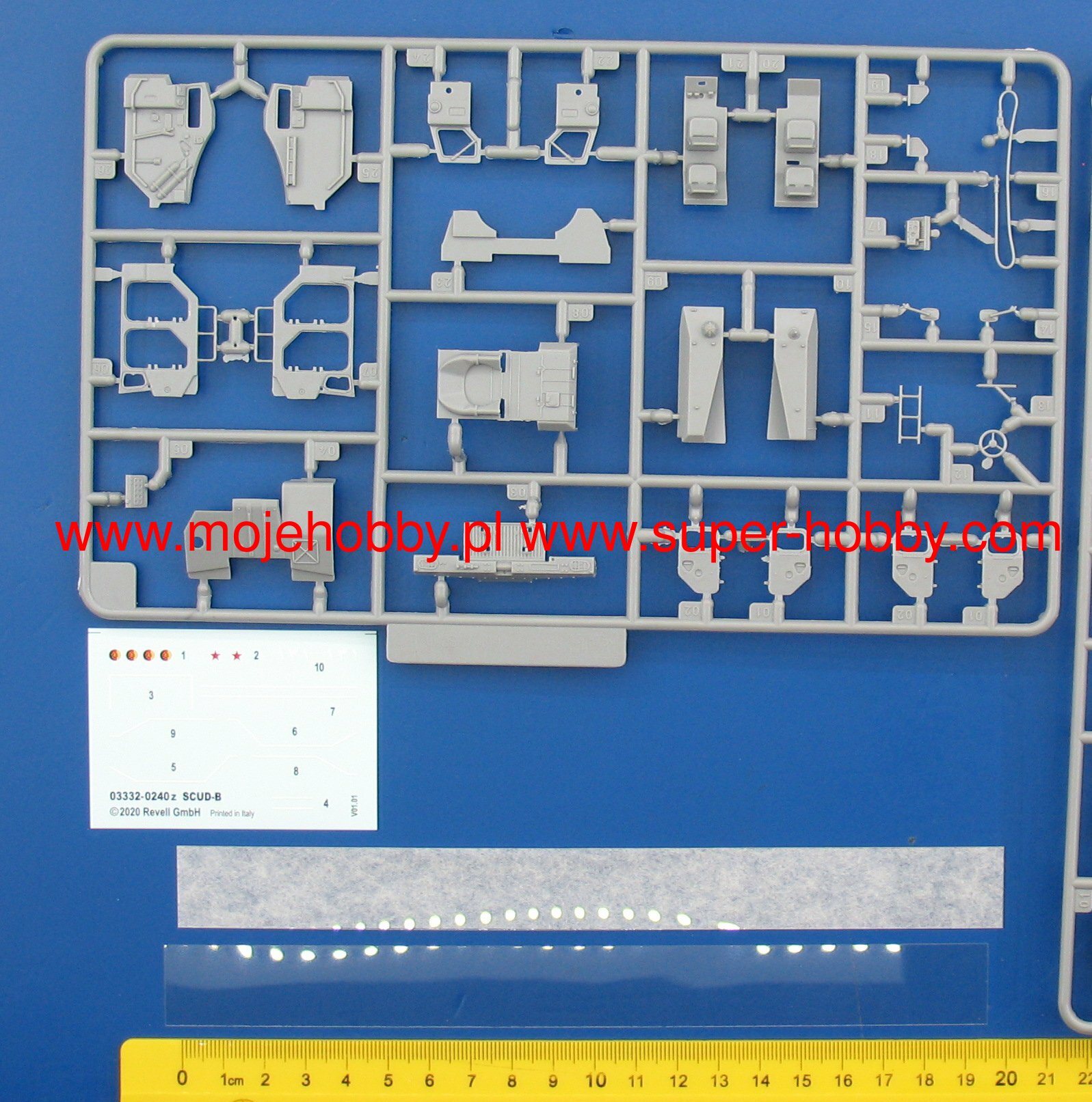 Набор из пластиковых деталей для сборки модели советского ракетного комплекса SCUD-B. Масштаб модели 1:72. Для сборки необходим модельный клей для пластика. Собранная модель нуждается в покраске. Внимание! Клей и краски в комплект не входят!