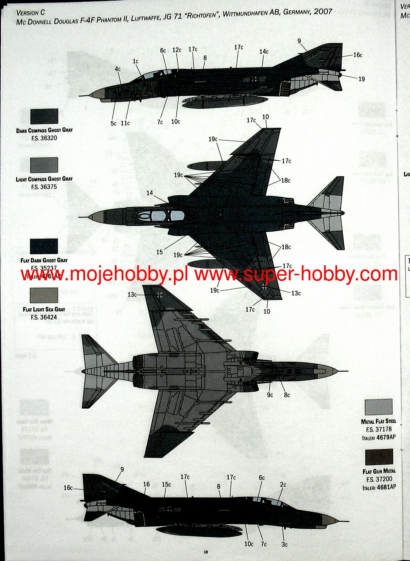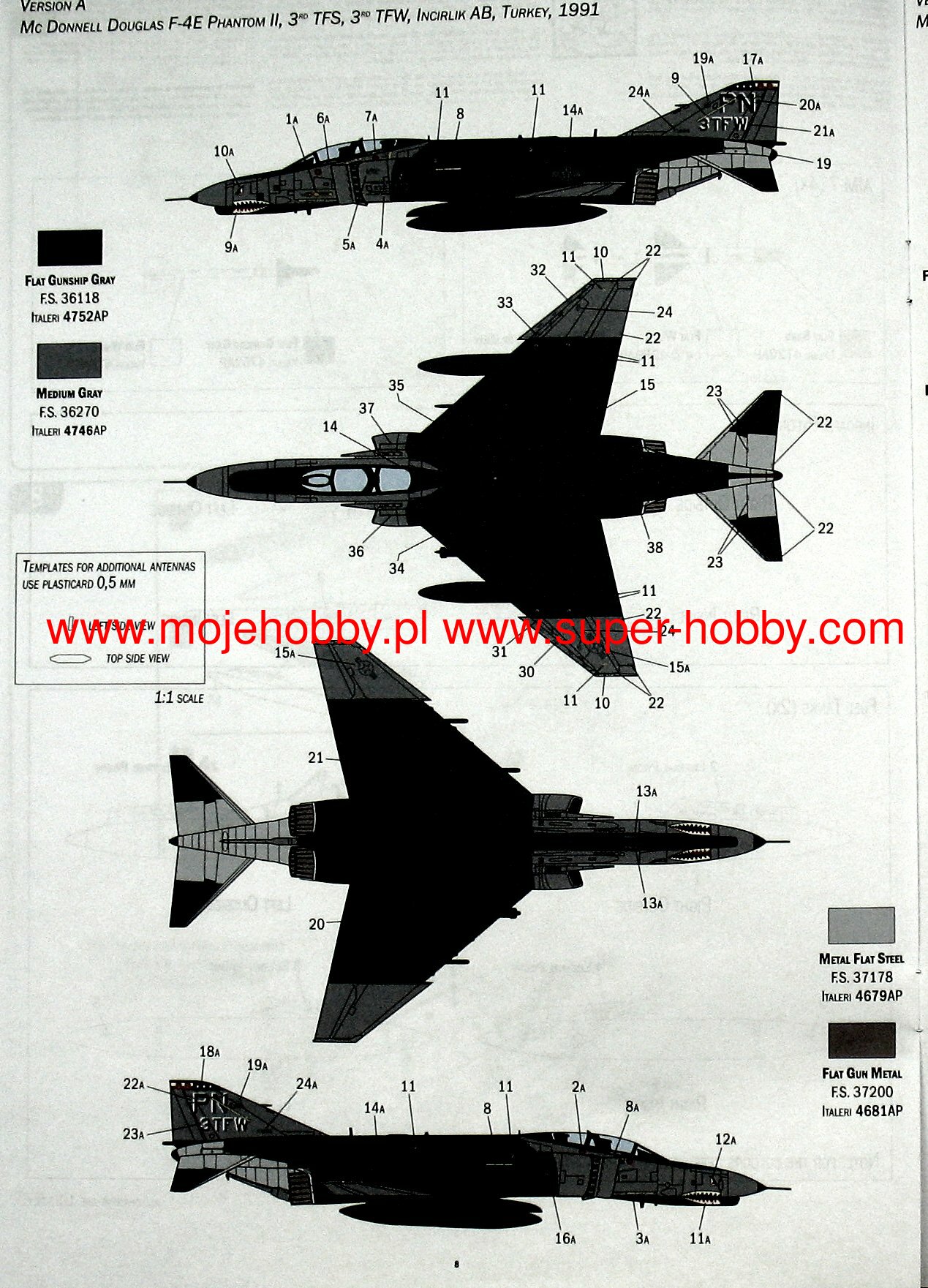 SUPER DECALS SHEET FOR 4 VERSIONS - COLOR INSTRUCTIONS SHEET
